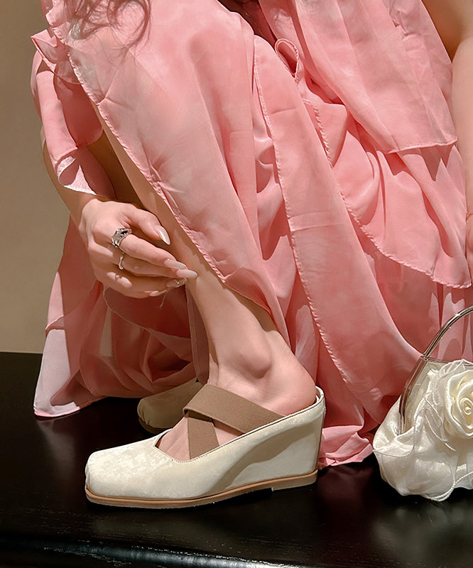 Boutique Khaki Splicing Cross Strap High Wedge Heels Slide Sandals DD1026