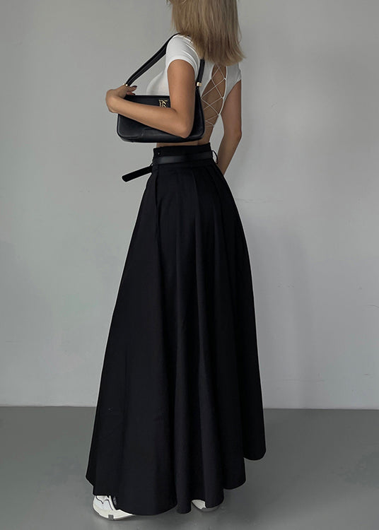 Boutique White Pockets Wrinkled High Waist Cotton Skirts Summer EE065