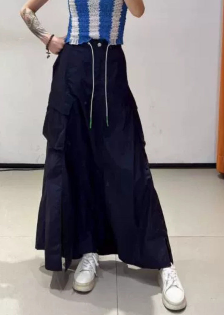 Brief White Pockets Patchwork Elastic Waist Tie Waist Maxi Skirts Summer TR002