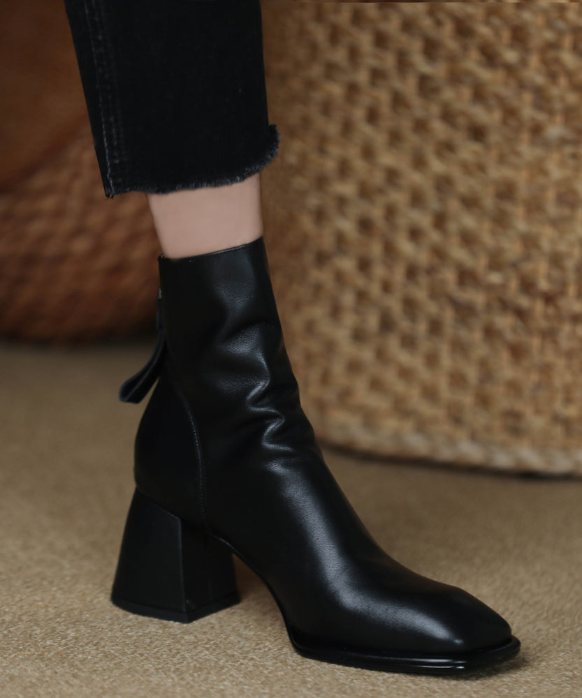 Brown Boots Chunky Cowhide Leather Women Splicing Zippered RD012