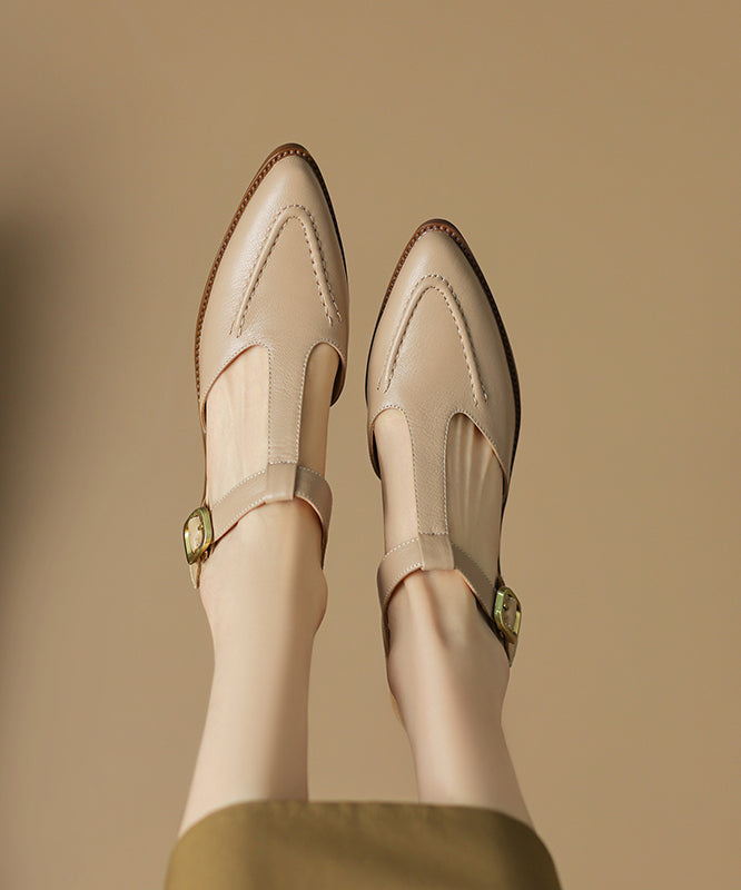Brown Chunky Sheepskin Simple Splicing Sandals Hollow Out Pointed Toe AP1015