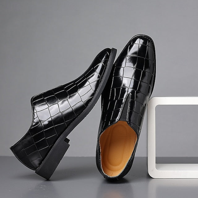 Gender: Men's, Category: Dress Shoes, Style: British, Casual, Occasion: Wedding, Activity: Walking, Toe Shape: Round Toe, Upper Materials: Patent Leather, Lining Materials: PU, Outsole Materials: Rubber, Pattern: Color Block, Crocodile, Season: Winter, Fall, Spring, Function: Comfortable, Breathable, Slip Resistant, Closure Type: Lace-up, 2025 Trends: Crocodile Pattern,