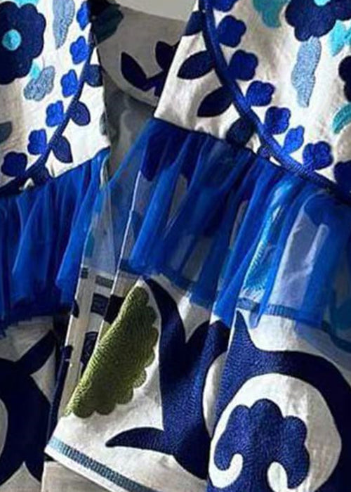 Art Blue Print Wrinkled Patchwork Cotton Cardigan Fall