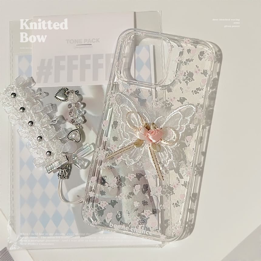 | Color: | Set Of 2 - Phone Case & Lace Charm - Floral - Transparent |