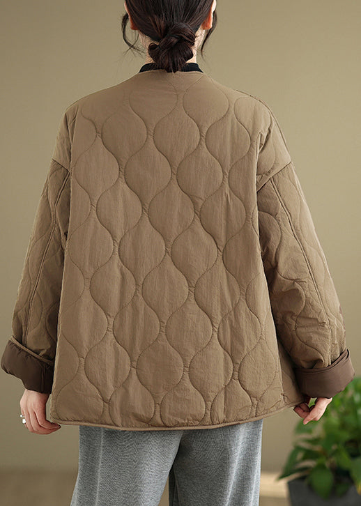 Casual Black O Neck Pockets Button Patchwork Fine Cotton Filled Coat Spring TI001