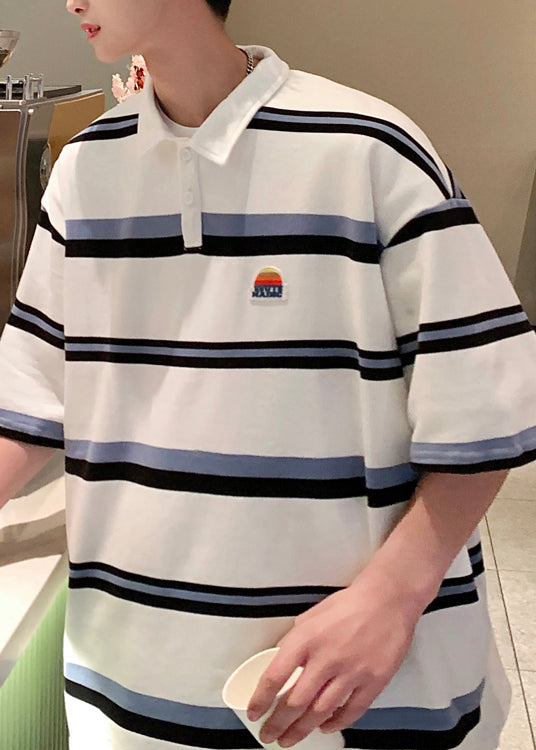 Casual Dark Grey Striped Cotton Men Polo T Shirt Summer QH013