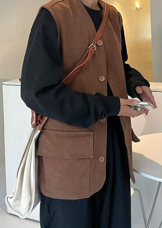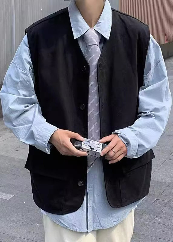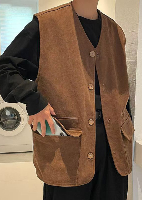 Casual Khaki V Neck Button Pockets Cotton Men Waistcoat Sleeveless RJ034