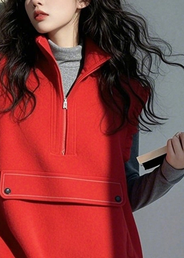 Casual Red Ruffled Zippered Patchwork Cotton Vest Top Sleeveless TN029