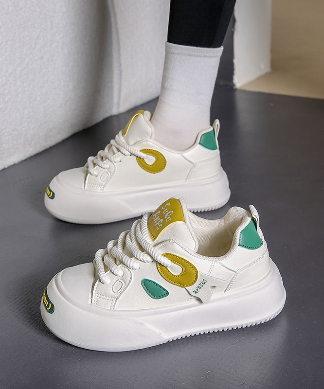 Casual Versatile Beige Black Flats Shoes Lace Up KJ038