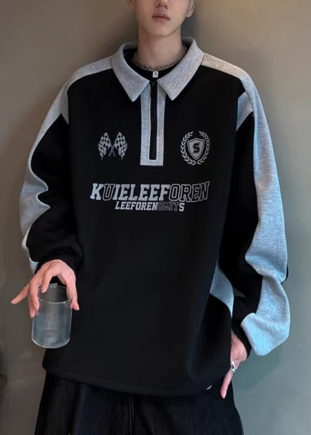 Spring White Streetwear TC030 Patchwork Casual Men Cotton Print Zippered