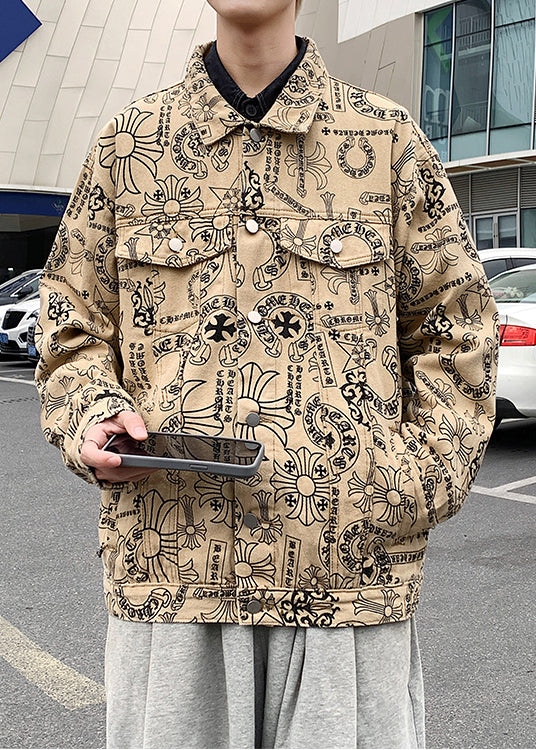 Casual Yellow Peter Pan Collar Print Cotton Mens Coats Fall WA019