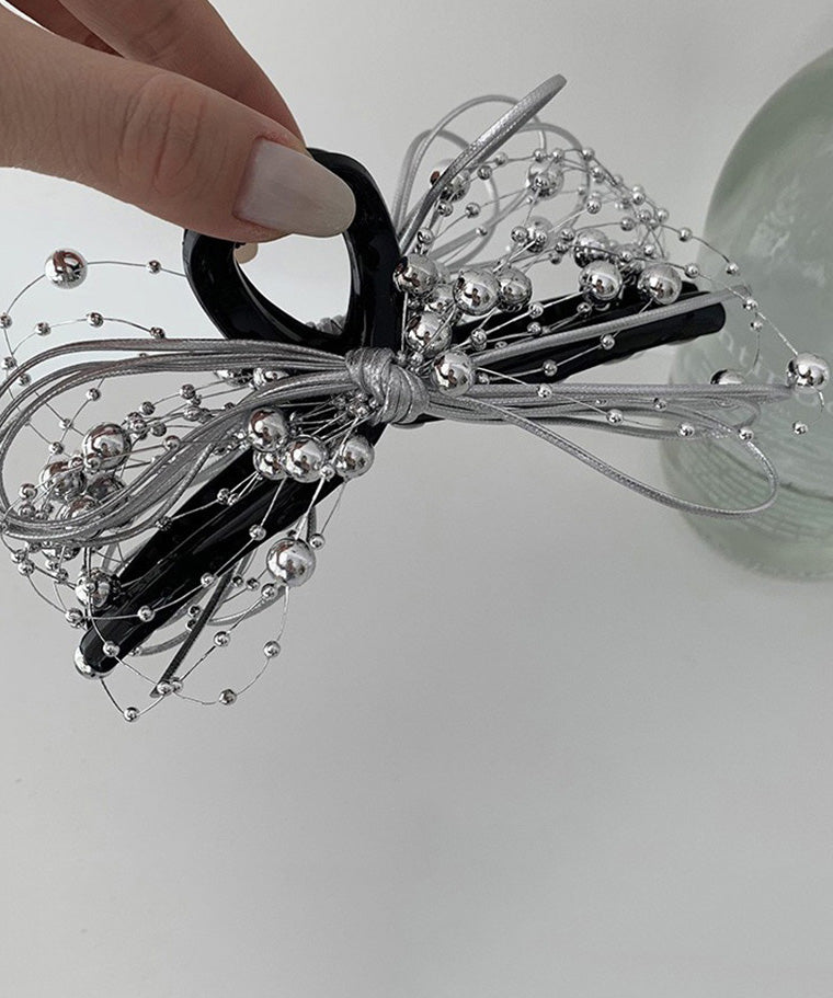 Indulge in the luxurious artistry of our Chic Black Acrylic Bow Round Beads Hairpin, a tasteful and exclusive hair accessory that exudes elegance. Embellished with intricate acrylic beads shaped as delicate bows, this hairpin is a true masterpiece in the world of fashion. Complete your look with this statement piece, and elevate your style to a whole new level.