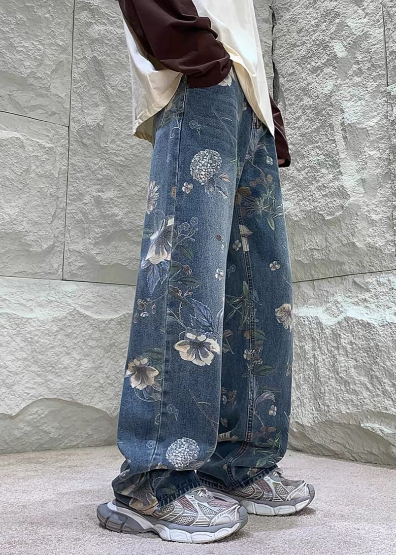 Chic Blue Pockets Print High Wais Mens Jeans Summer SA019