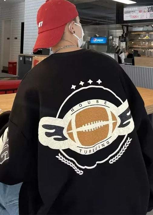 Chic Khaki O Neck Patchwork Warm Fleece Mens Loose Sweatshirt Winter EQ017