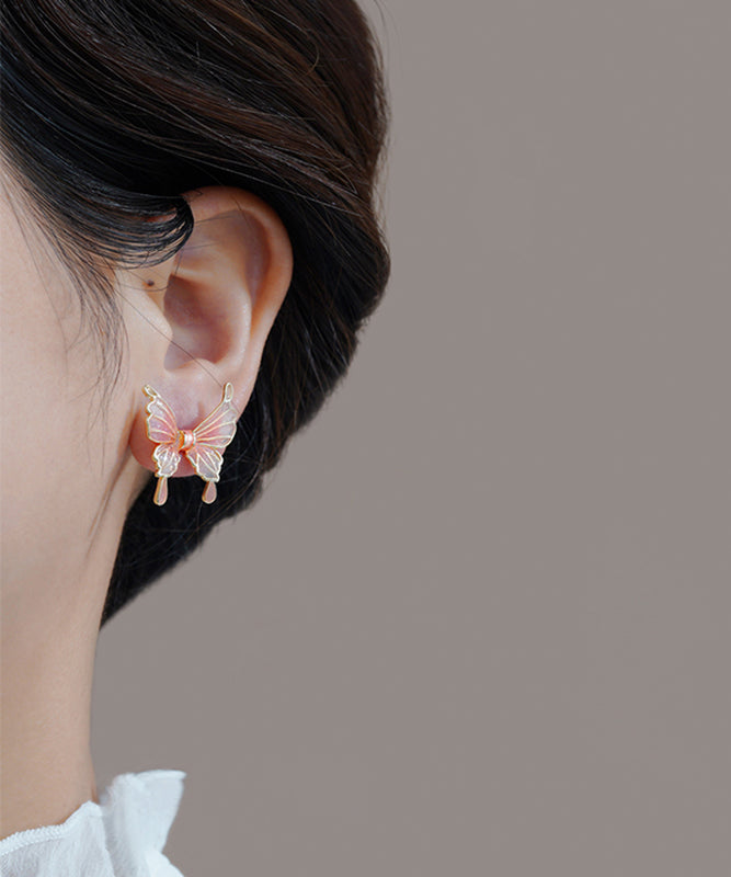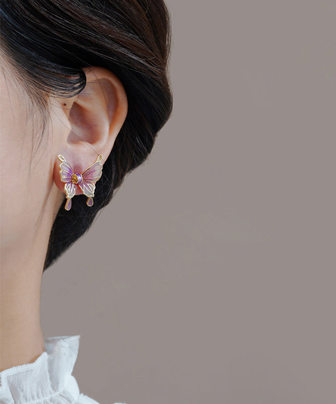 Chic Purple Sterling Silver Overgild Drip Glaze Butterfly Stud Earrings EY005