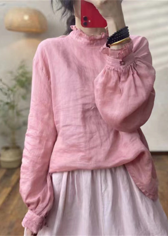 Chic Red Ruffled Linen Blouses Lantern Sleeve
