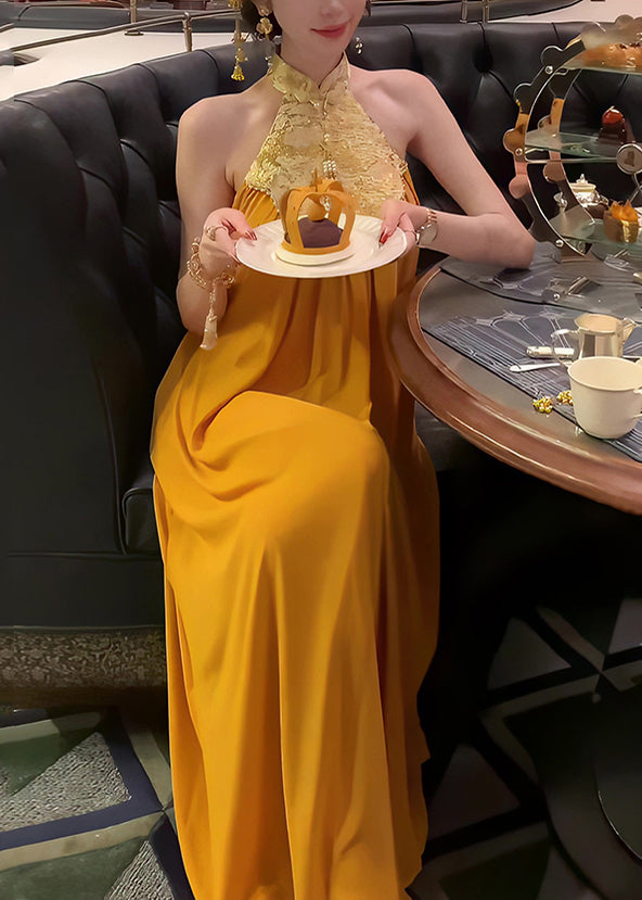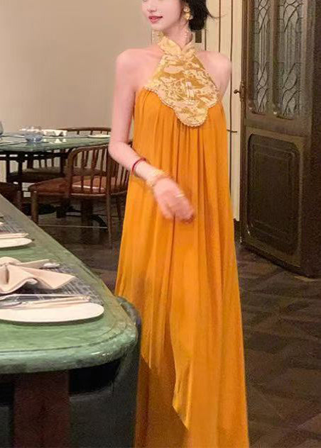 Chiffon New Halter Orange Retro Patchwork Summer Dresses