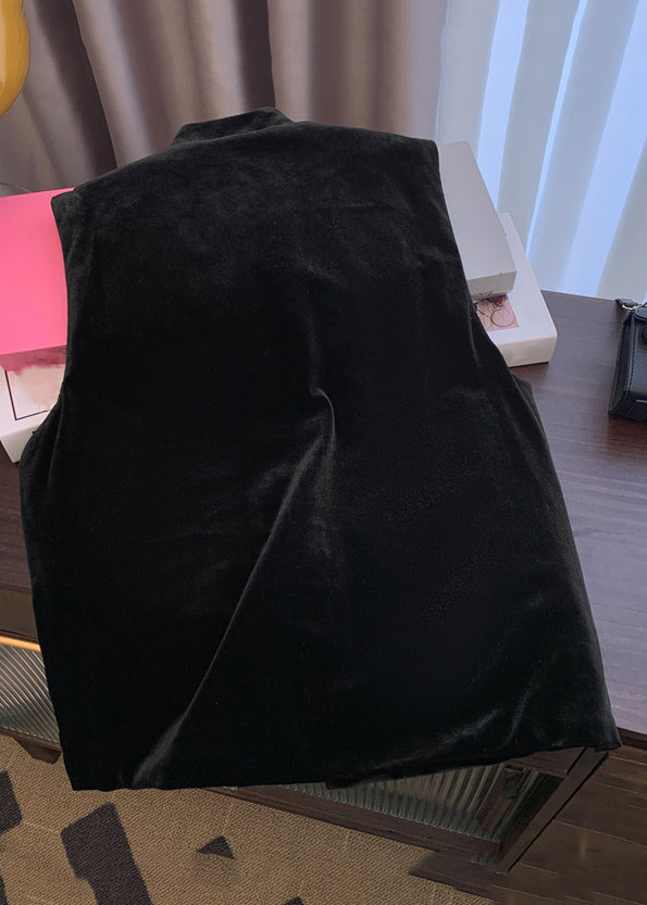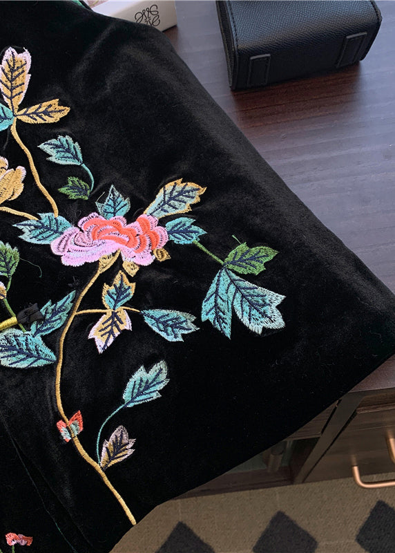 Chinese Style Black Embroidered Button Silk Velour Waistcoat Sleeveless QO064