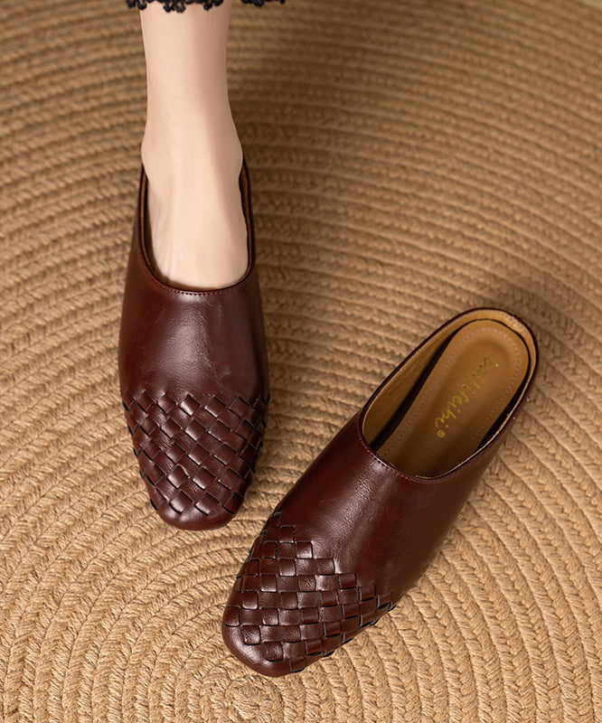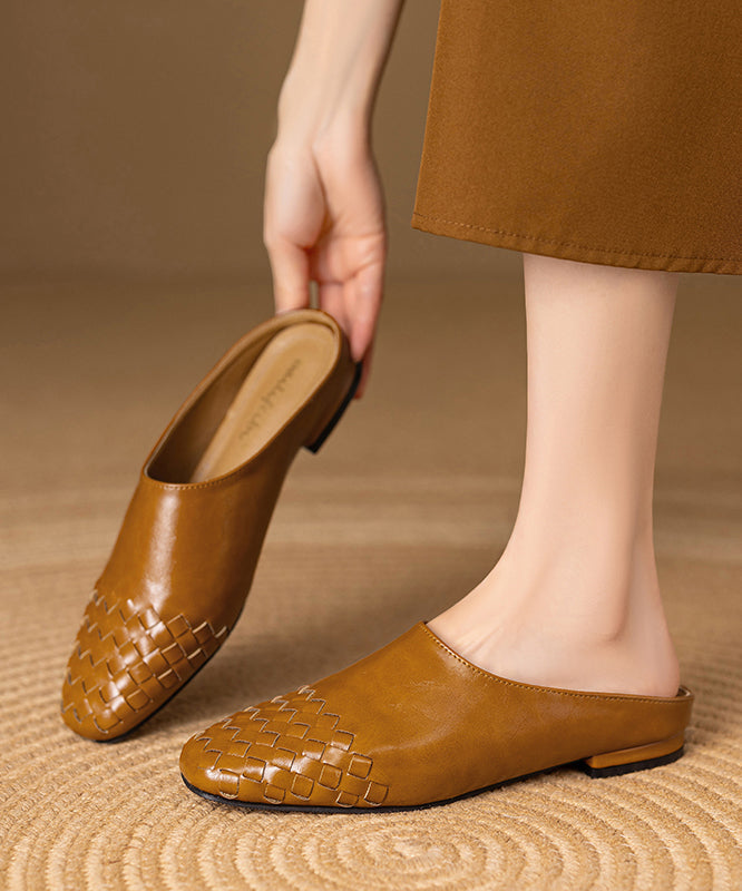 Classy Splicing Comfy Black Cowhide Leather Slide Sandals