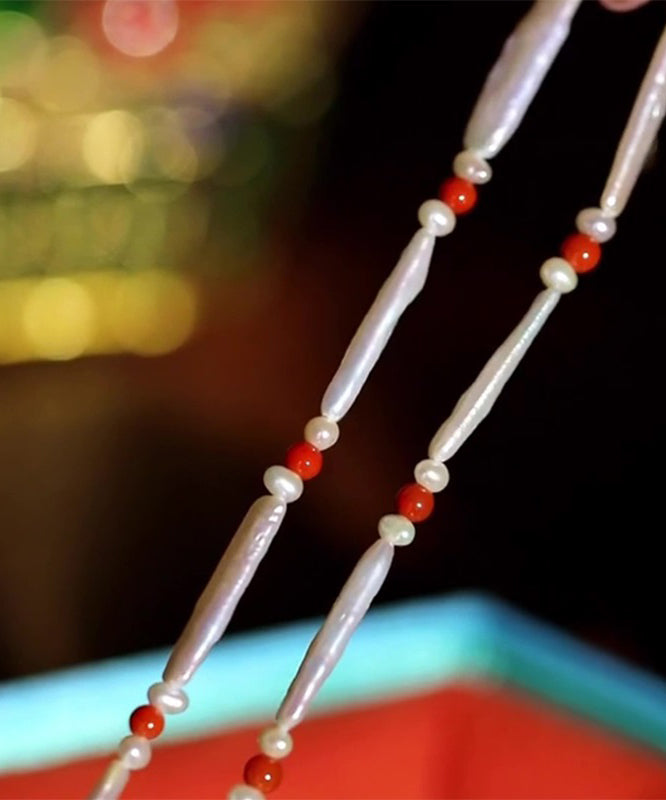 Classy White Sterling Silver Overgild Pearl Agate Princess Necklace II017