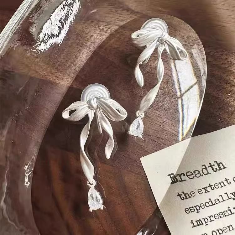 Bow Rhinestone Drop Earring / Clip-On Earring