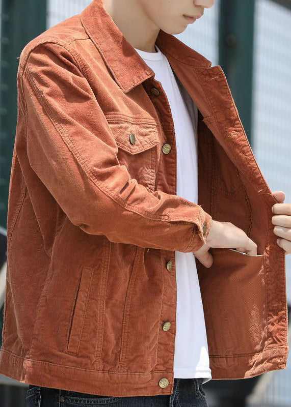 Classy Khaki Peter Pan Collar Button Corduroy Mens Coats Spring