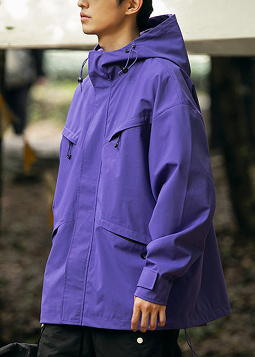 Loose Blackish Green Hooded Zippered Pockets Cotton Mens Coats Spring