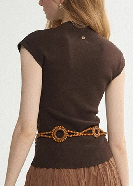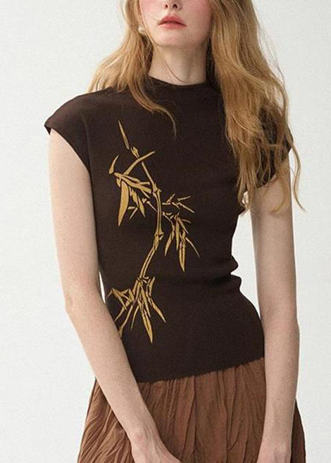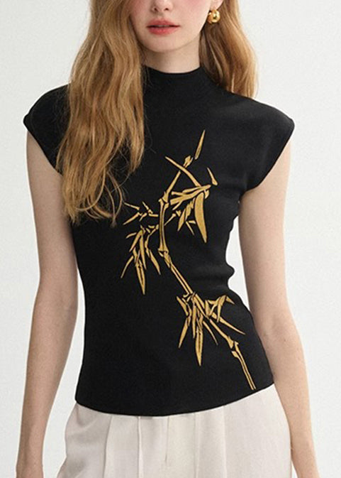 French White Stand Collar Print Cotton Tank Tops Summer
