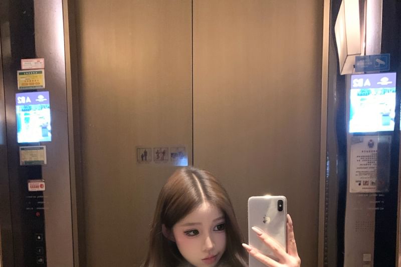 Collared Faux Fur Jacket / High Rise Belted Mini Skirt
