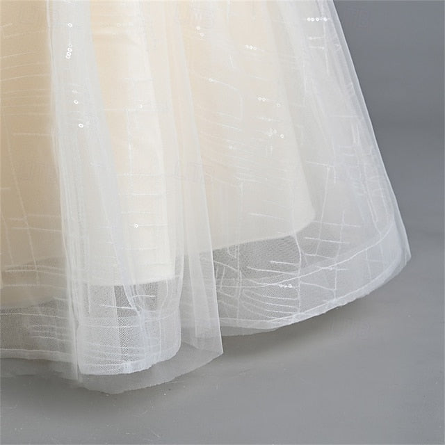 Gender: Girls', Age Group: Kids, Style: Sweet, Elegant, Occasion: Special Occasion, Party, Performance, Wedding, Kids Apparel: Flower Girl Dress, Party Dress, Fabric: Polyester, Pattern: Solid Color, Sequin, Sleeve Length: Short Sleeve, Design: Mesh, Patchwork, Age: 4-12 Years, Season: Fall, Winter, Spring, Look After Me: Hand wash, Dresses Type: Swing Dress, Tulle Dress, Party Dress, Fit Type: Regular Fit, Dress Length (cm): Maxi, Neckline: Crew Neck,