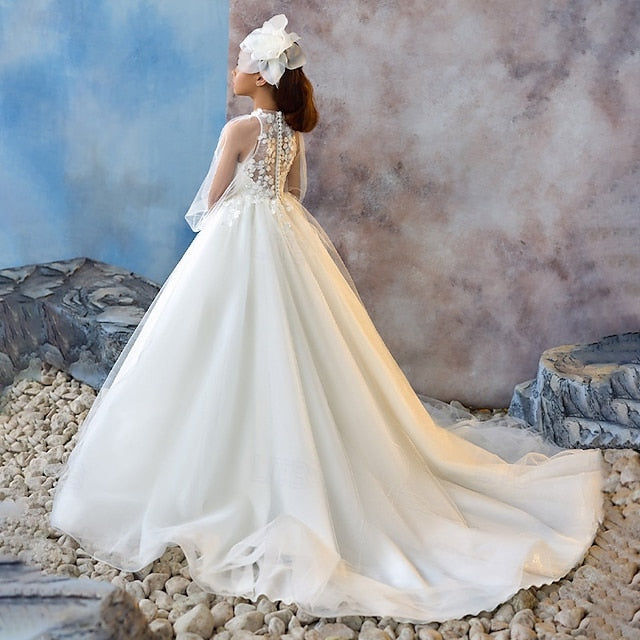 Gender: Girls', Age Group: Kids, Style: Sweet, Princess, Occasion: Performance, Wedding, Party, Kids Apparel: First Communion Dress, Party Dress, Fabric: Mesh, Pattern: Solid Color, Sleeve Length: Sleeveless, Long Sleeve, Design: Mesh, Age: kids, Season: Summer, Winter, Fall, Spring, Look After Me: Hand wash, Elasticity: Inelastic, Dress Length (cm): Mid-Calf, Fit Type: Tailored Fit, Dresses Type: Sheath Dress, Tulle Dress, Neckline: Off Shoulder,
