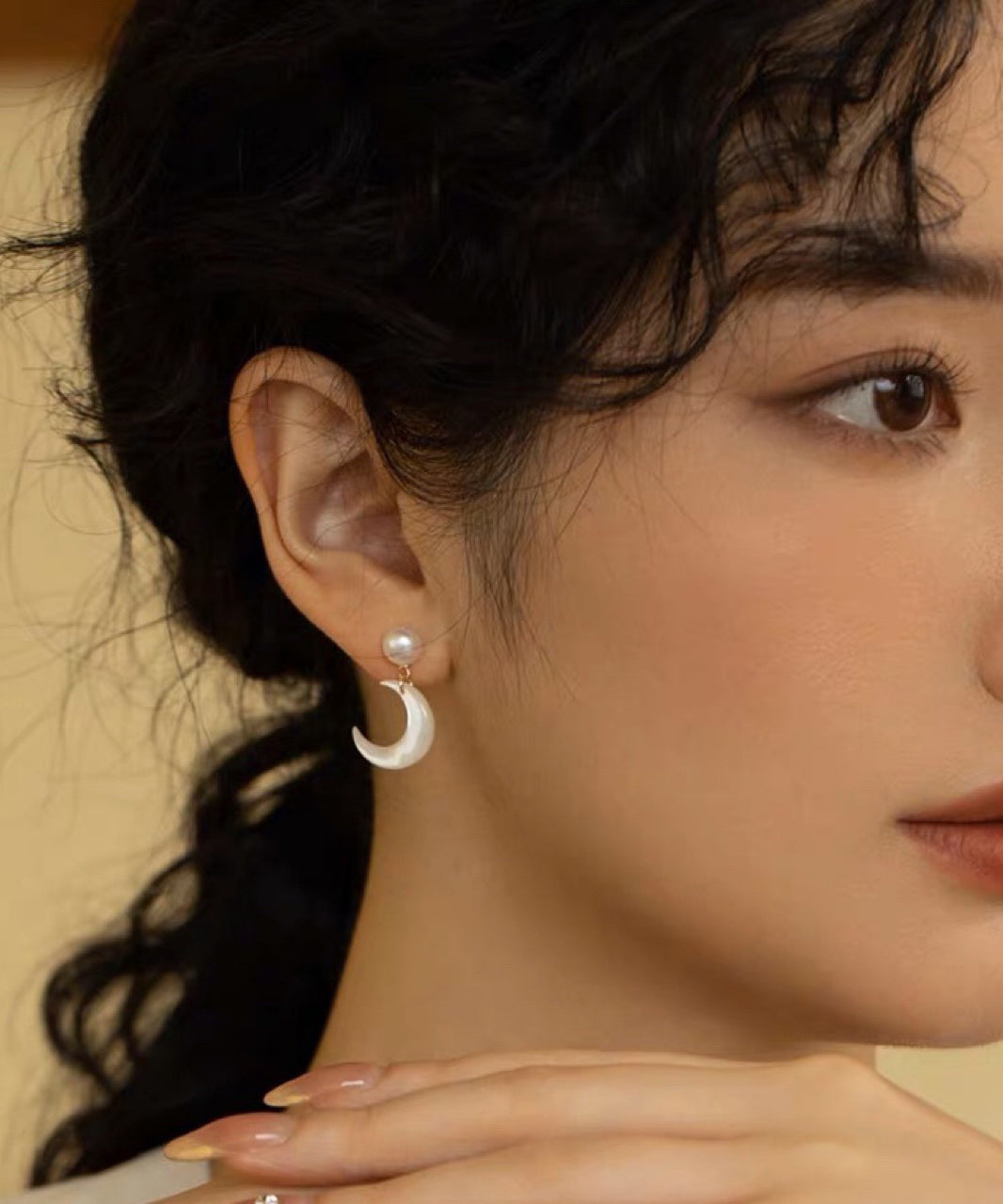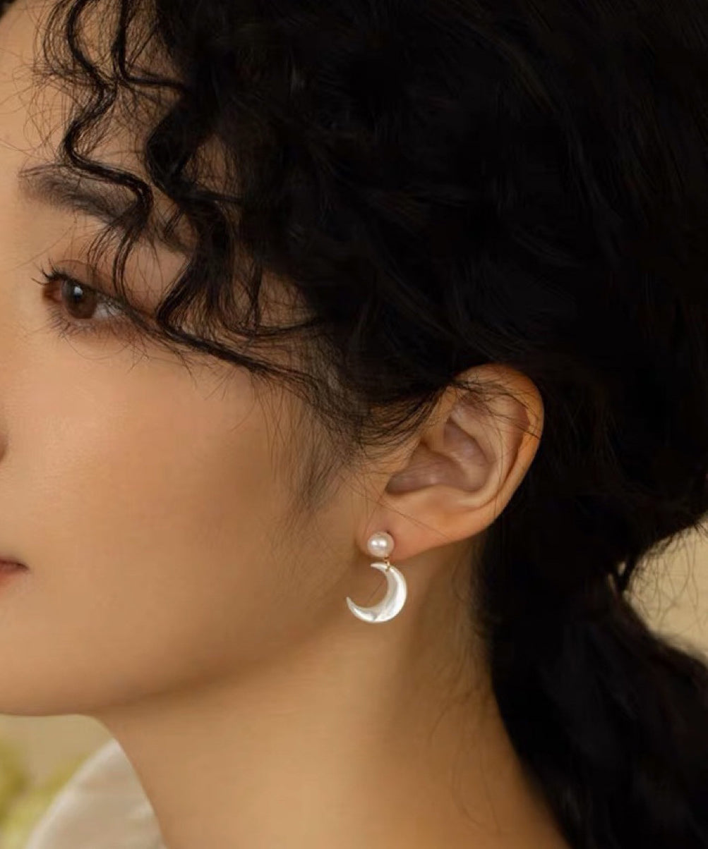 Copper White Novelty Overgild Stud Moon Earrings Pearl
