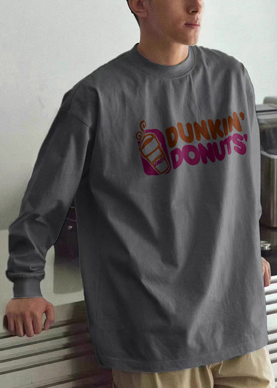 Casual Black O Neck Print Cotton Men T Shirts Spring