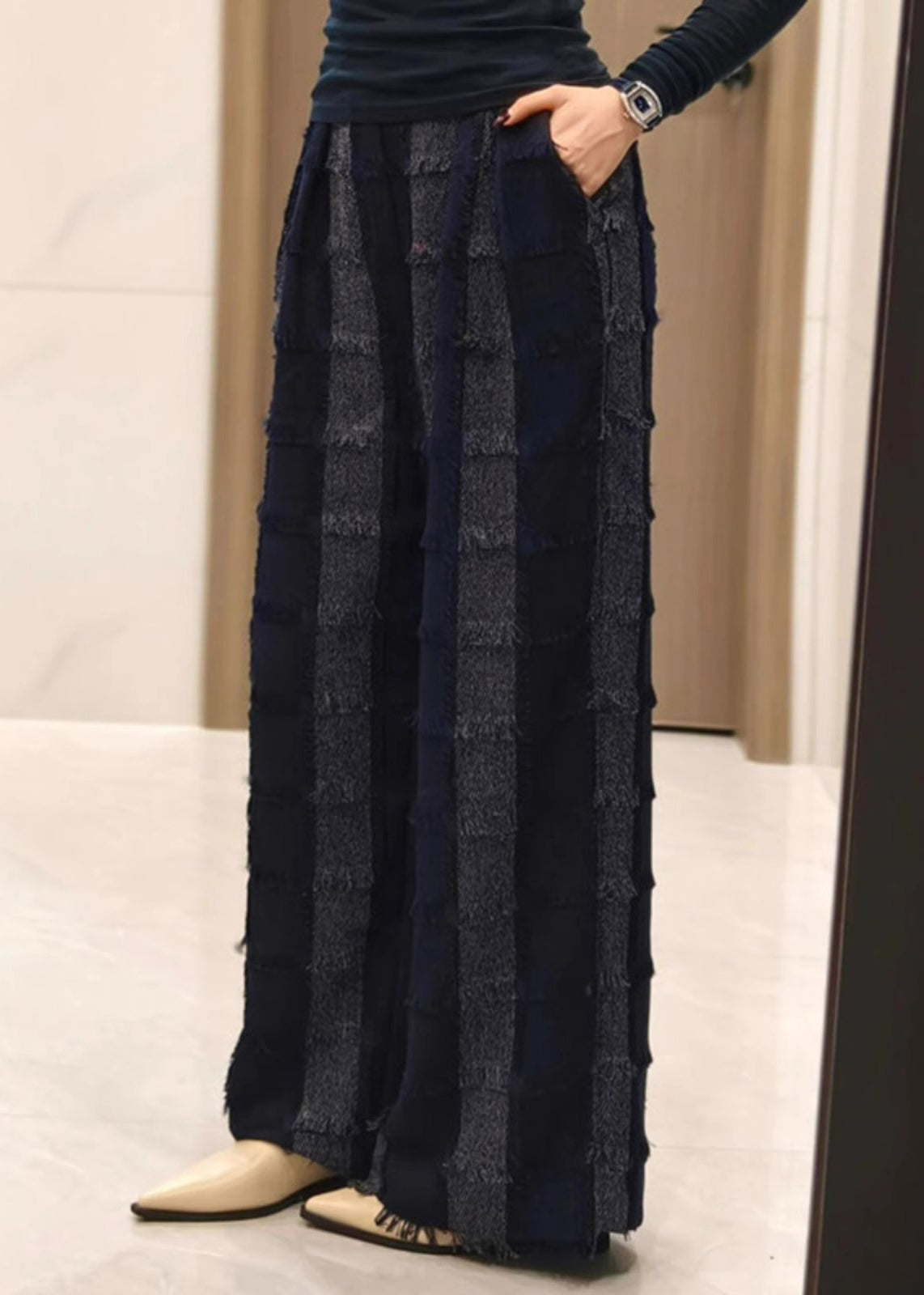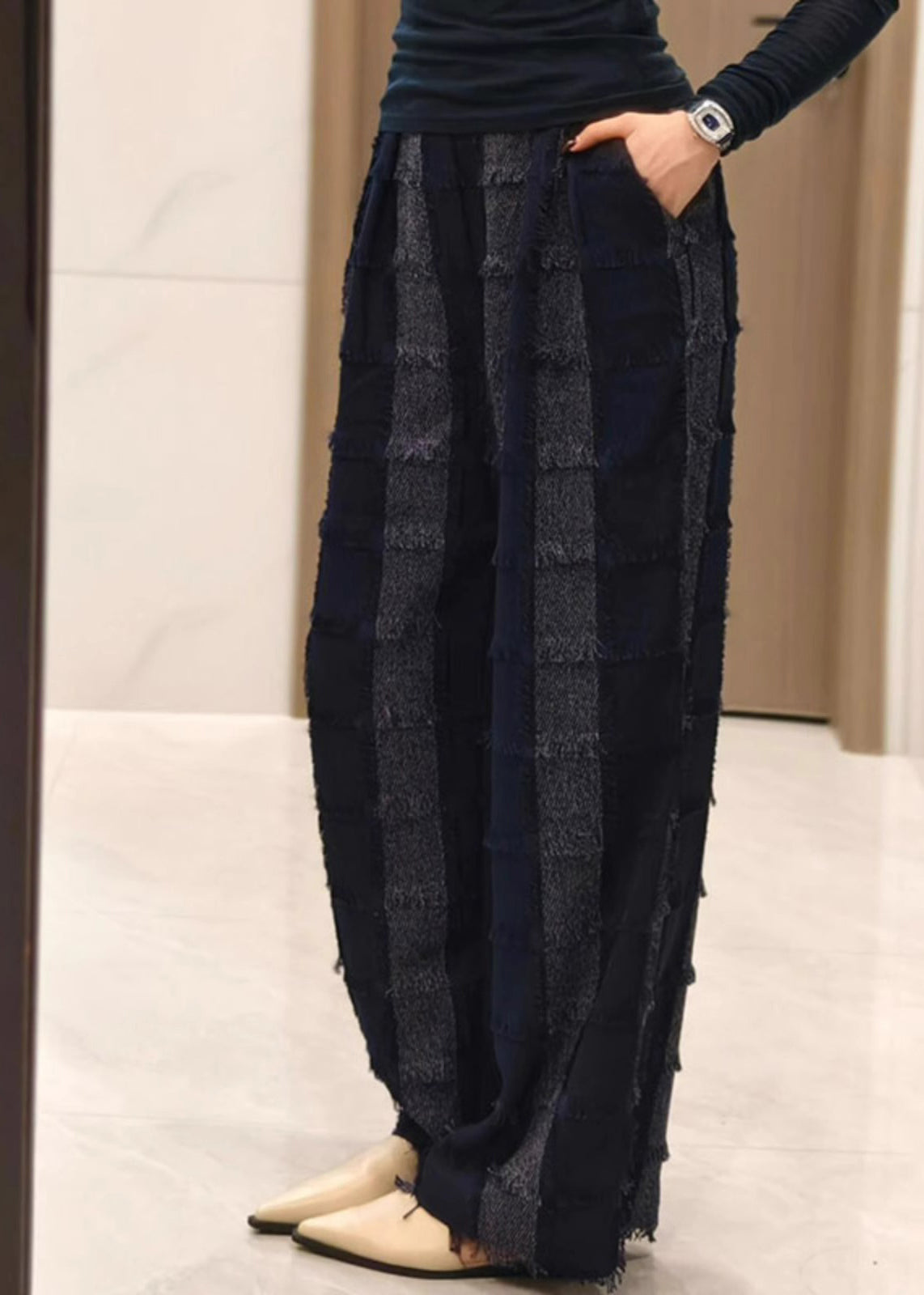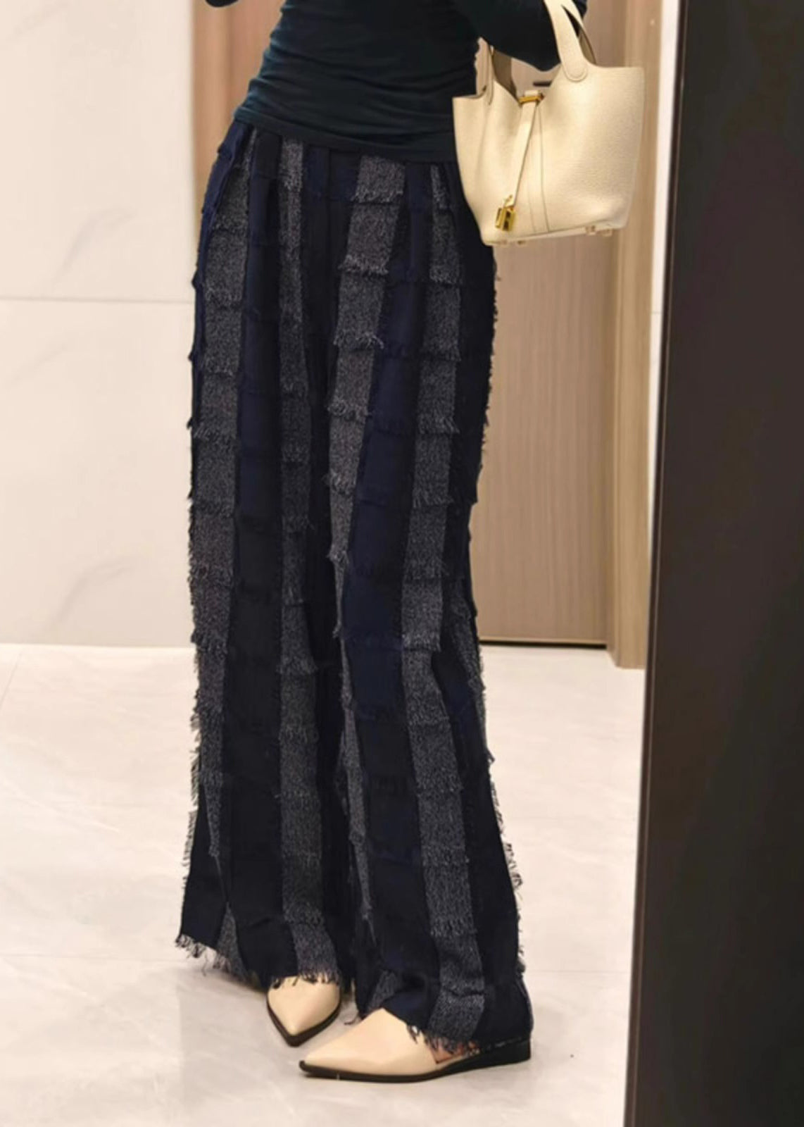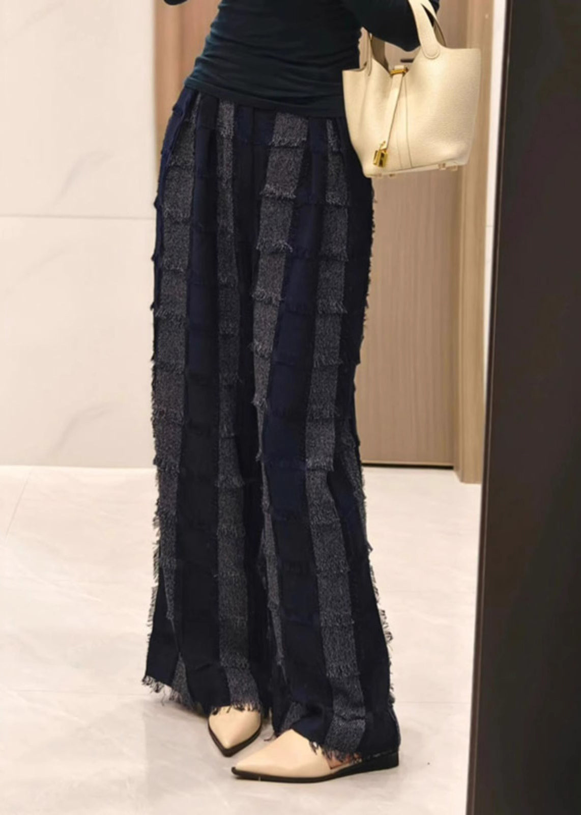 Cotton Pants Striped Tasseled Fall Stylish Grey