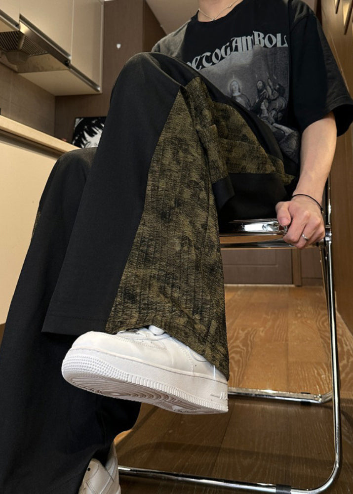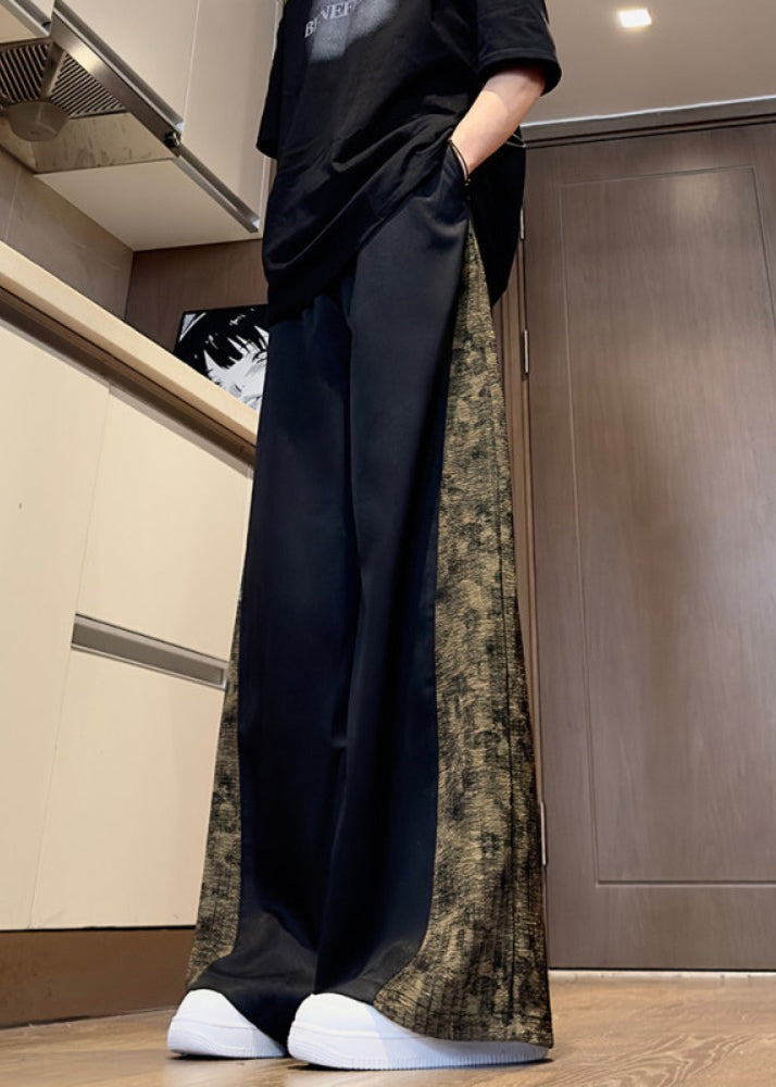 Stylish Black Print Pockets Patchwork Cotton Summer Pants for Men