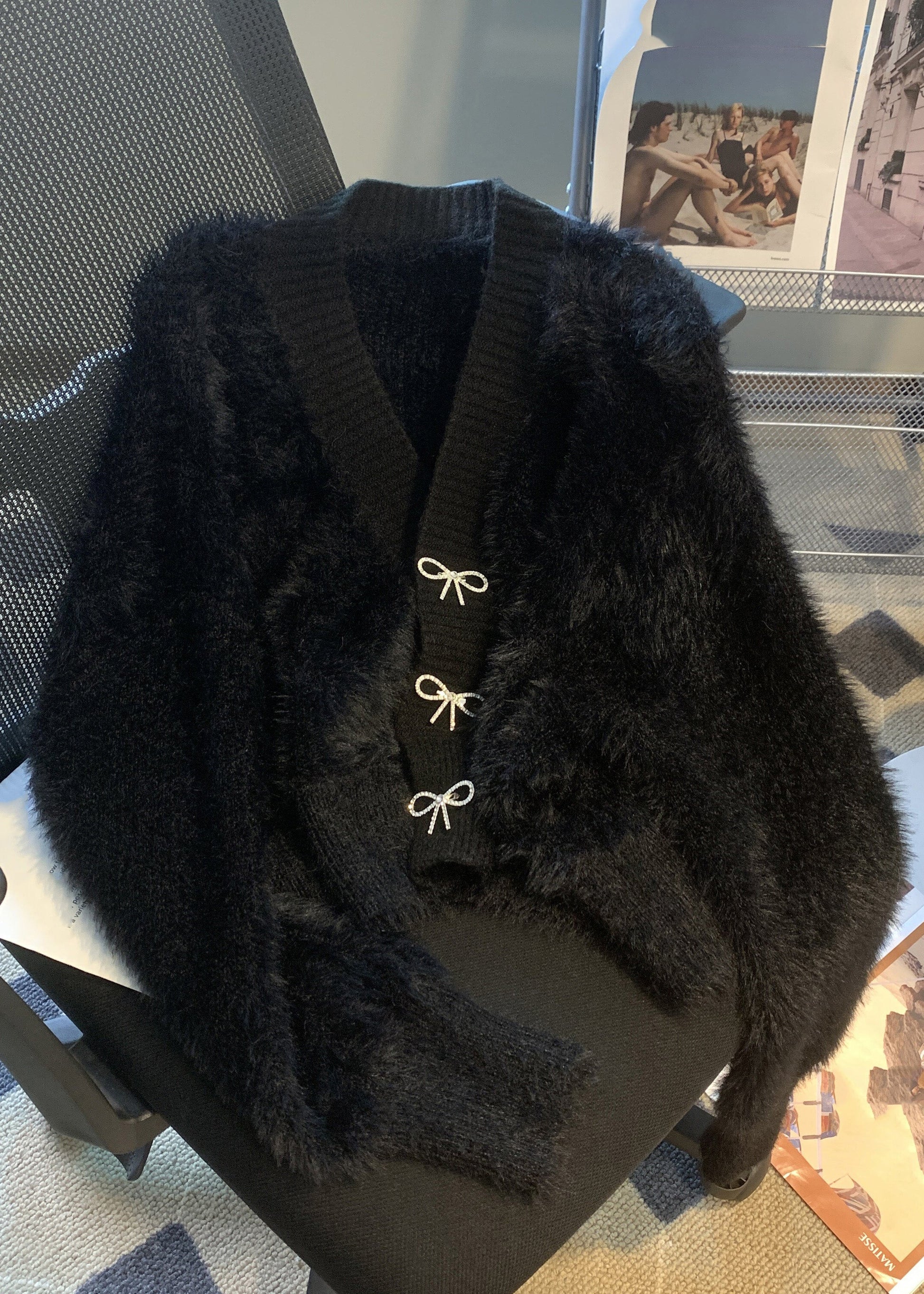 Cute Pink V Neck Button Mink Hair Knitted Cardigan Winter RP005