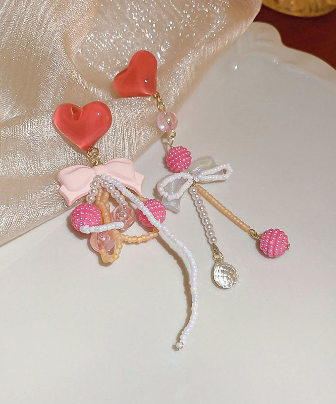 Cute Red Alloy Acrylic Resin Coloured Glaze Floral Tassel Drop Earrings QZ005