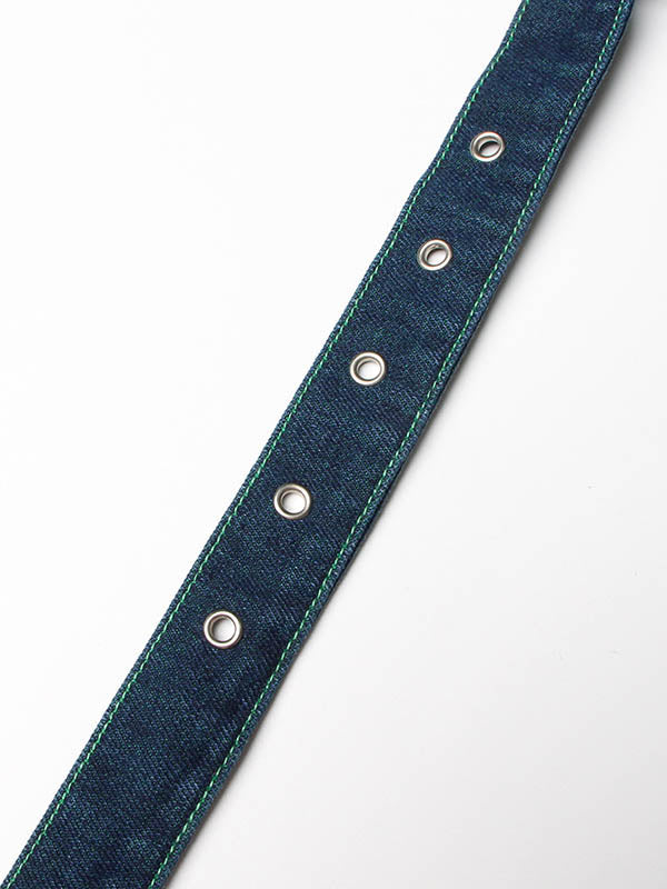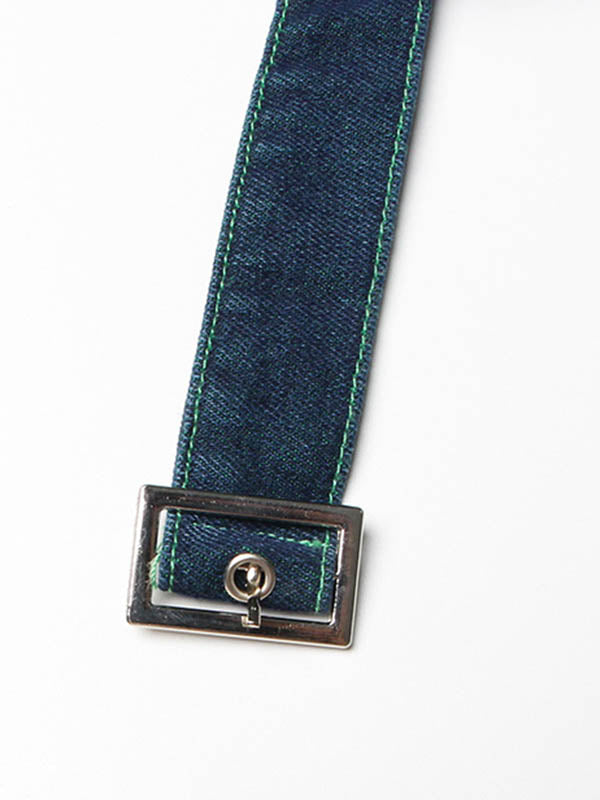 Denim Shiny Waisted Skirt A-Line Green Belted Chic High Tulle