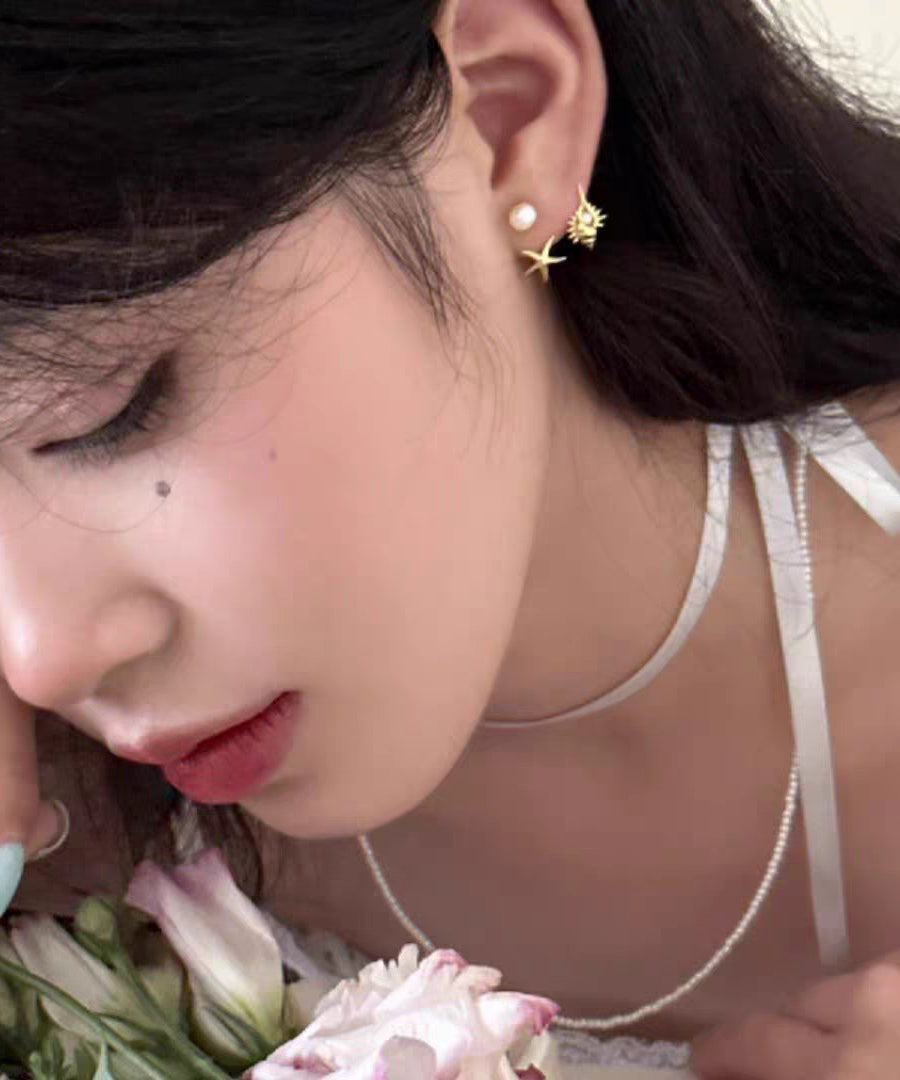 DIY Gold Earrings Pearl Star Overgild Stud Sea Conch Copper