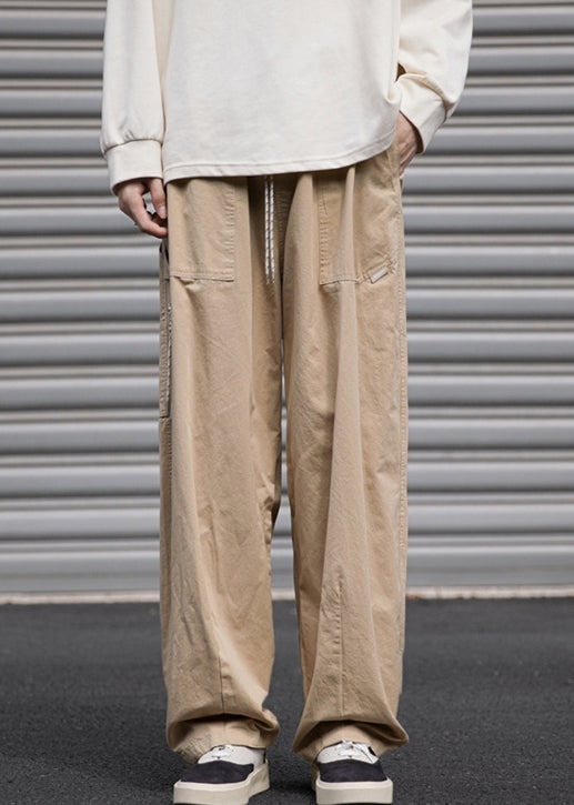 Loose Navy Pockets Solid Drawstring Cotton Mens Pants Spring