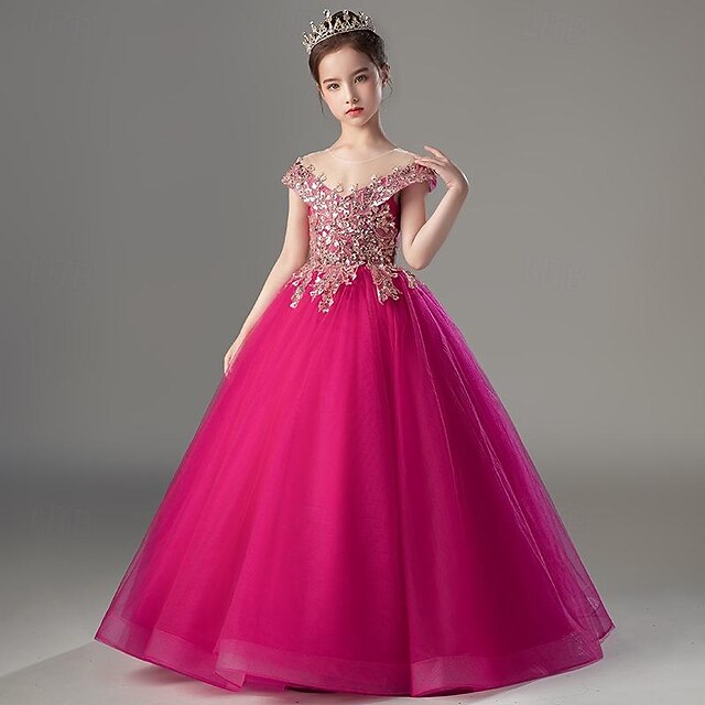 Gender: Girls', Age Group: Kids, Style: Sweet, Princess, Occasion: Performance, Wedding, Kids Apparel: Party Dress, Fabric: Mesh, Pattern: Solid Color, Sleeve Length: Short Sleeve, Design: Mesh, Age: 2-12 Years, Season: Summer, Fall, Spring, Look After Me: Hand wash, Elasticity: Inelastic, Fit Type: Tailored Fit, Dresses Type: Sheath Dress, Tulle Dress, Flower Girl's Dress, Dress Length (cm): Mid-Calf, Neckline: Crew Neck,
