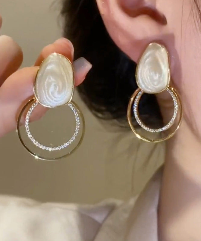Drip Glaze Gold Copper Earrings Art Zircon Alloy Stud