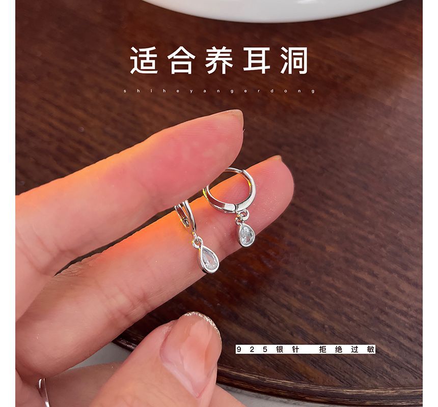 Droplet Rhinestone Sterling Silver Dangle Earring