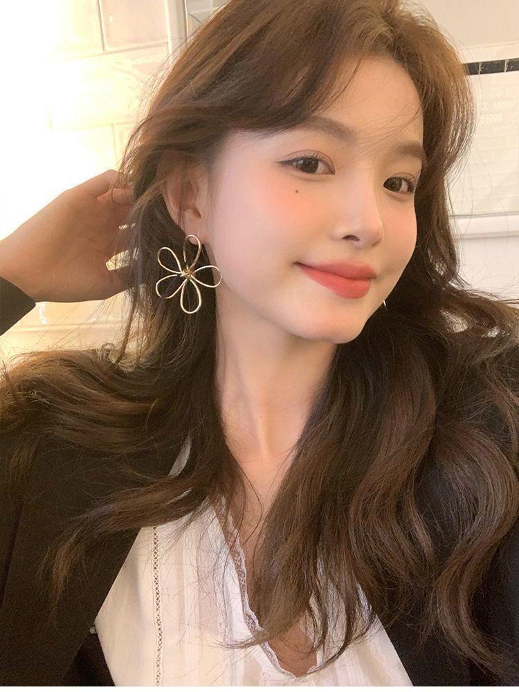 Cute Pink Crystal Pearl Tulle Floral Tassel Drop Earrings LL007