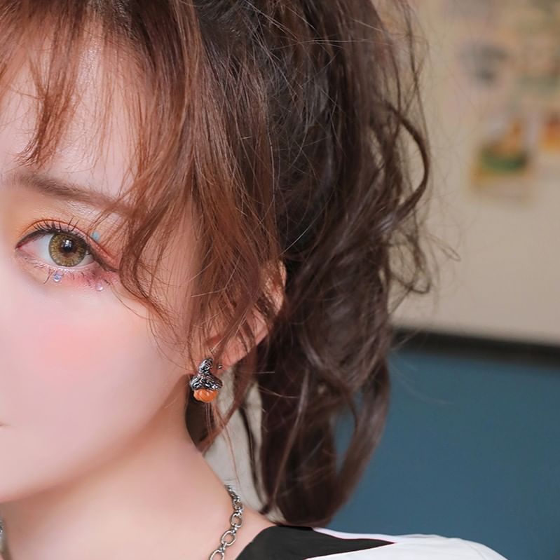 Halloween Pumpkin Phantom Sterling Silver Stud Earring / Ear Cuff