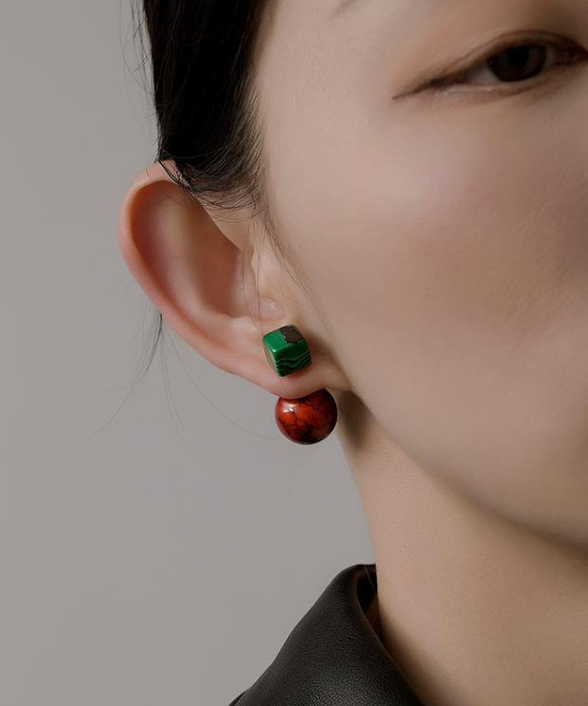Earrings Art Colorblock Overgild Copper Gem Drop Stone