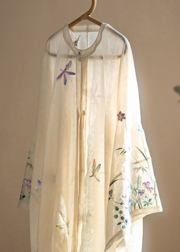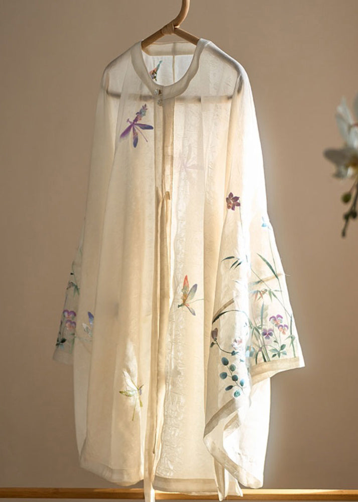 Elegant Apricot O-Neck Embroidered Floral Button Shirt Fall QB016