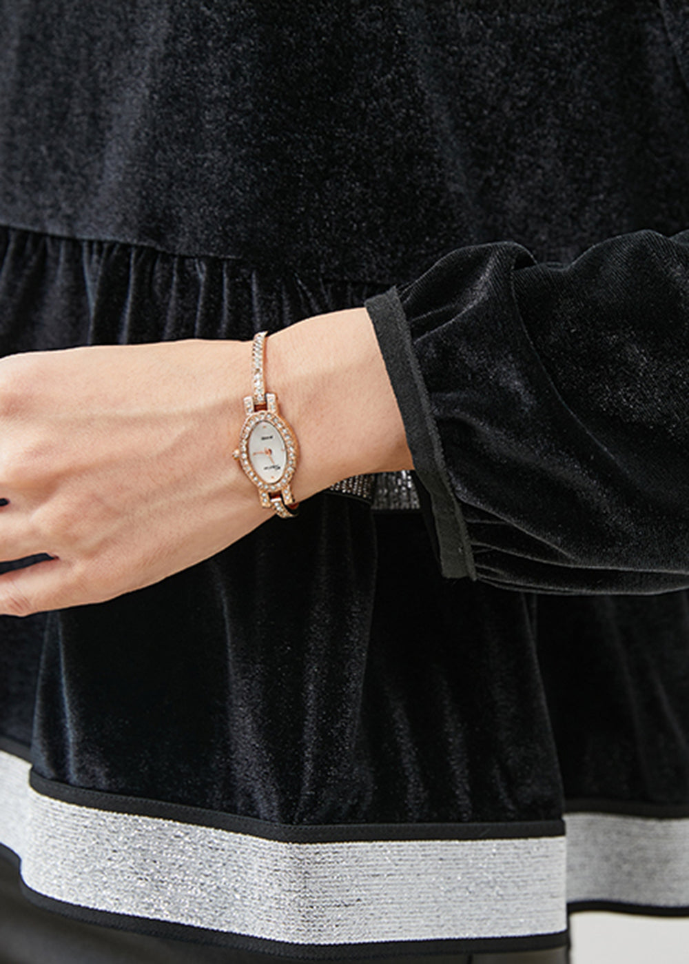 Elegant Black O-Neck Patchwork Silk Velvet Sweatshirt Top Spring YU1054