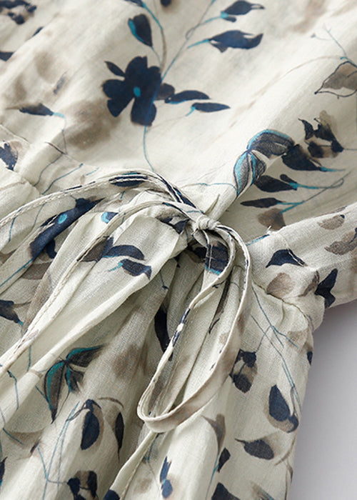 Elegant Light Grey Print Lace Up Cotton Dresses Summer GG026
