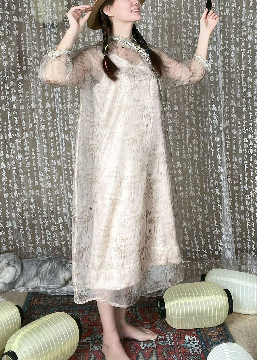 Elegant Print Lace Patchwork Tulle Two Pieces Set Bracelet Sleeve NN037